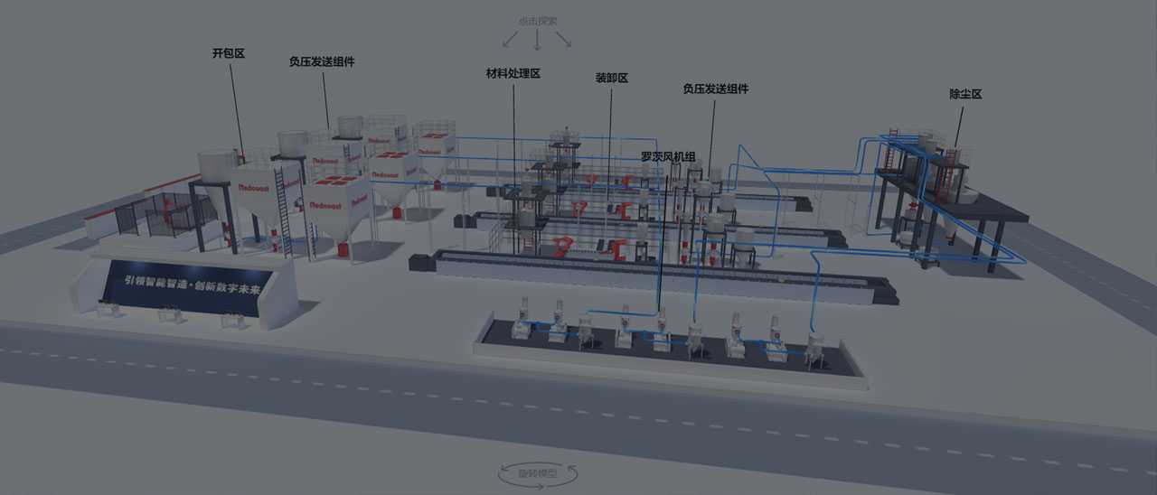 采用全密闭管道进行物料的输送,免了灰尘、杂物等污染物的混入,从而保证了原料的清洁度和产品的安全性。